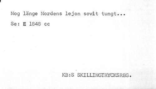//// Nog länge Nordens lejon sovit tungt... Se: E 1848 cc //// r //// KB:S SKILLINGTRYCKSREG. ////