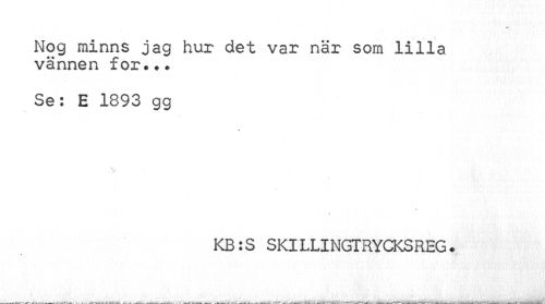//// Nog minns jag hur det var när som lilla vännen for••• //// Se: E 1893 gg //// KB:S SKILLINGTRYCKSREG. ////