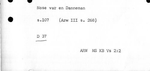 //// Nose var en Danneman //// i //// # s.107 (Arw III s. 268) //// D 37 //// ARW MS KB Vs 2:2 //// » ////