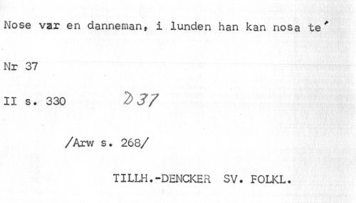 //// Nose var en danneraan» i lunden han kan nosa te' Nr 37 //// * //// II s. 330 2)37 //// /Arw s. 268 //// /TILLH.-DENCKER SV. FOLKL. ////