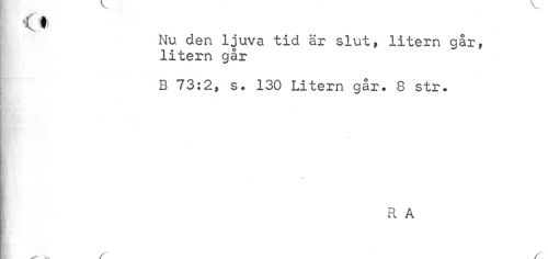 //// <f) //// Nu den ljuva tid är slut» litern gar» litern går //// B 73:2» s. 130 Litern går. 8 str. //// R A //// //// /
