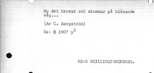 //// Nu det brusar och skummar på blånande våg ? •« //// (Av C. Bergström) Se: E 1907 y3 //// mm //// KB:S SKlLLINGTRYCKSREG. //// ~ - * r * ////