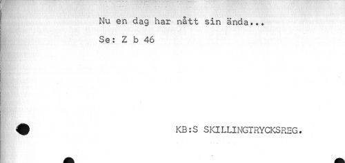 //// Nu en dag har nått sin ända... Se: Z b 46 //// I //// - //// •KB:S SKILLINGTRYCKSREG. //// * ////