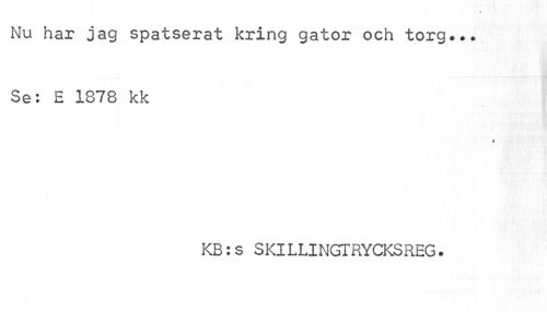 //// Nu har jag spatserat kring gator och torg... Se: E 1878 kk //// KB:s SKILLINGTRYCKSREG. ////