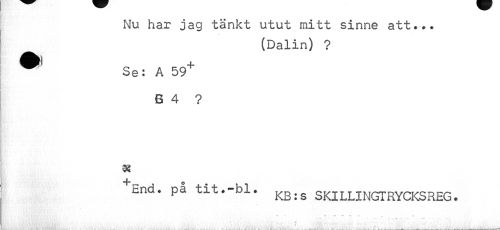 //// Nu har jag tänkt utut mitt sinne att... //// (Dalin) ? //// ^ Se: A 59+ //// G 4 ? //// 35 //// cnd. pa tit.-bl. KB:S SKILLINGTRYCKSREG. //// T ** « //// «. • . • - t . ' .. . ////