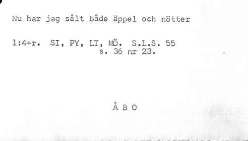 //// Nu har jag sålt både äpplen och nötter //// 1:4+r. SI, PY, LT, MÖ. S.L.S. 55 //// s. 36 nr 23. //// ÅBO ////