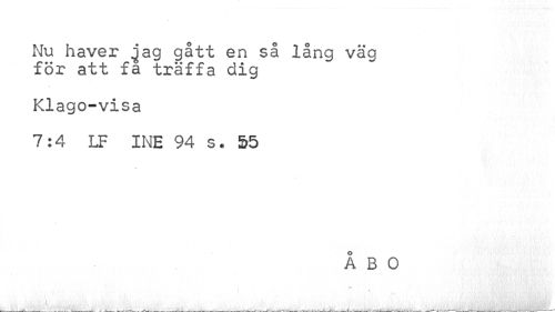 //// Nu haver ^ag gått en så lång väg för att fa träffa dig //// Klago-visa //// 7:4 LF INE 94 s. 55 //// ÅBO ////