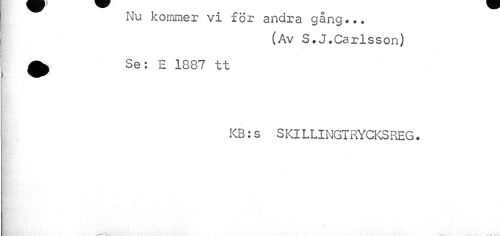 //// Nu kommer vi för andra gång... //// (Av S.J.Carlsson) //// ^ Se: E 1887 tt //// KB:s S Kl L LI NGT RYCKS REG. //// j ? ////