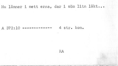 //// Nu lämner i mett erna, dar i söm litn läkt..*. A 372:10 ---•-------• 4 str. kom. //// » //// RA ////