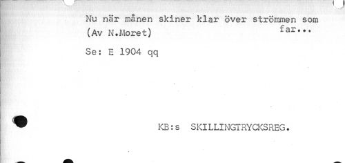 //// Nu nar månen skiner klar över strömmen som (Av N.Moret) far... //// Se: E 1904 qq <3® KB: s SKILLI NGT RYCKS REG. ////