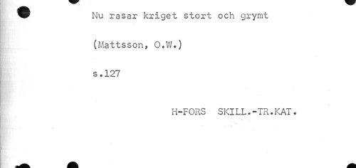 //// w Nu rasar kriget stort och grymt //// (Mattsson, O.W.) Se 127 //// H-FORS SKILL.-TR.KAT. //// * //// • .1 , ////