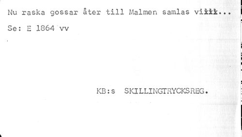 //// Nu raska gossar åter till Malmen samlas viiii... I //// p //// ¦ //// Se: E 1864 vv //// » | //// ¦ ¦ //// I //// t //// t ¦ //// ¦ //// KB:S SKILLINGTRYCKSREG. t //// ¦ ////