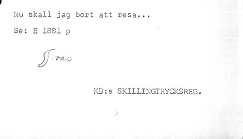 //// Nu skall jag bert att resa... Se: E 1881 p //// KB:s SKlLLINGTRYCKSREG. ////