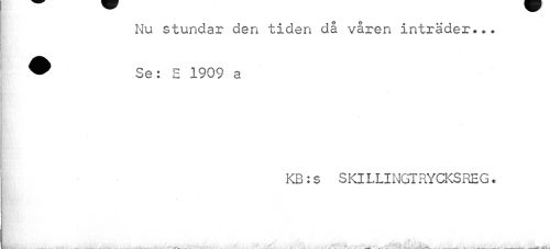//// Nu stundar den tiden då våren inträder... //// 9 Se: E 1909 a //// KB:s SKlLLINGTRYCKSREG. //// k ' . .... //// .. • . ..vtW ... .. ... ......- -----w ////