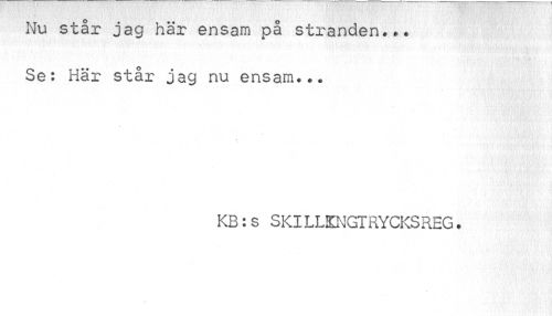//// Nu står jag här ensam på stranden... //// Se: Här står jag nu ensam... //// v //// KB:s SKILIXMGTRYCKSREG. ////