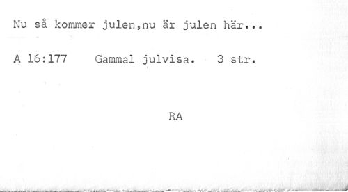 //// Nu så kommer julen,nu är julen här... //// A 16:177 Gammal julvisa. 3 str. //// t //// RA ////