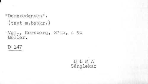 //// "Domaredansen"« (text m.beskr.) //// Vgl.? Korsberg f 3715» s 95 Möller. //// D 147 //// U L M A Sånglekar ////