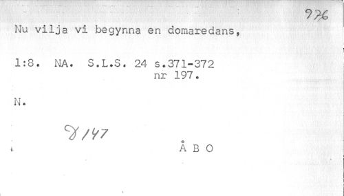 //// Nu vilja vi begynna en domaredans» //// » //// 1:8. NA. S.L.S. 24 s.371-372 I //// nr 197. //// N. //// t a b o //// » //// t ////