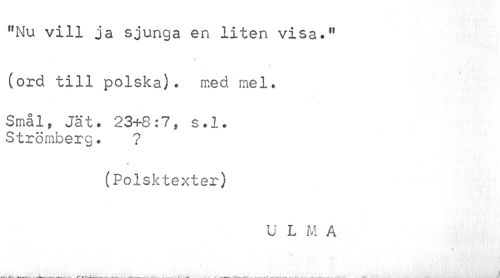 //// "Nu vill ja sjunga en liten visa.11 //// //// //// //(ord till polska), med mel. //// Smål, Jät. 23+8:7., s.l. Strömberg. ? //// (Polsktexter) //// U L M A //// j //// A,.^.. ___~____ - .^W-i-L-.___-_.v ---.------- » - - ---- -------- - --- - ////