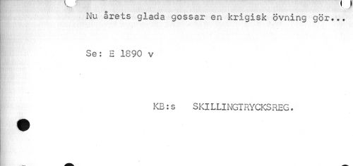 //// Nu årets glada gossar en krigisk övning gör... Se: E 1890 v //// P //// BP ' //// KB:s SKILLINGTRYCKSREG. //// ¦ ////