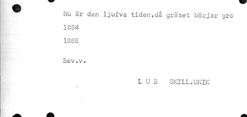 //// Nu är den ljufva tidenfdå gräset börjar gro 1884 //// 1888 Bev.v. //// L U B SKILL.UNIK ////