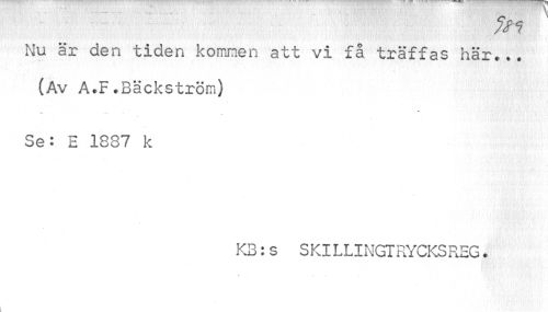 //// Nu är den tiden kommen att vi få träffas här... (Av A //// F.Bäckström) Se: E 1837 k //// KB:s SKILLINGTRYCKSREG. ////
