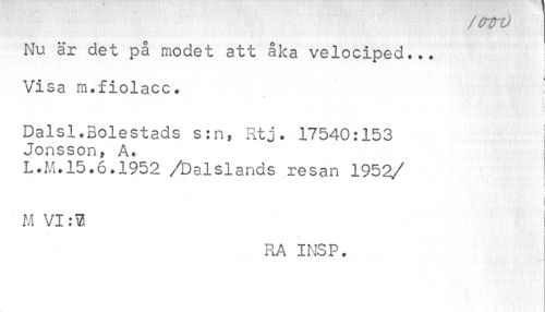 //// /otv //// Nu är det på modet att åka velociped... //// . //// i //// t ! //// Visa m.fiolacc. //// c i //// Dalsl.Bolestads s:nf Rt j. 17540:153 | //// Jonsson* A. //// L.M.15.6.1952 /Dalslands resan 1952 //// /i i //// M VI| //// RA INSP. ////