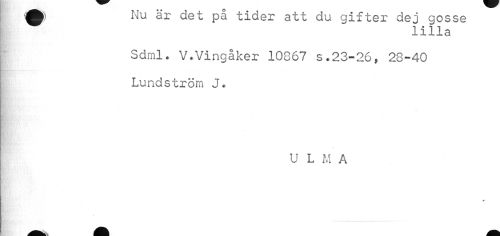 //// ^ Nu ar det pa tider att du gifter dej gosse //// lilla //// Sdml. V.Vingåker 10867 s.23-26, 28-40 Lundström J. //// U LMA //// é ////