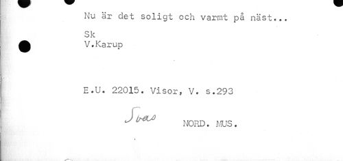 //// Nu är det soligt och varmt på näst... Sk //// ^k V.Karup //// E.U. 22015. Visor, V. s.293 //// I C //// ^ NORD. MUS . ////