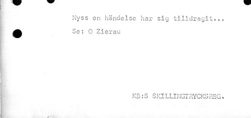 //// Nyss en händelse har sig tilldragit»** A Se: O Zierau //// KB:S SKlLLINGT RYCKS REG* //// • - ////