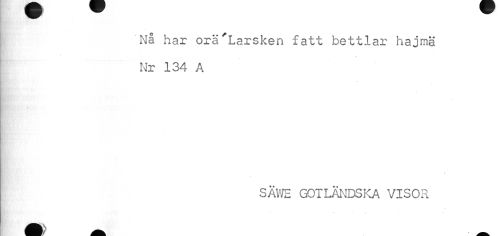 //// W //// Nå har orä'Larsken fatt bettlar hajmä //// % //// Nr 134 A //// SÄ V/E GOTLÄNDSKA VISOR //// ^k) a. ////