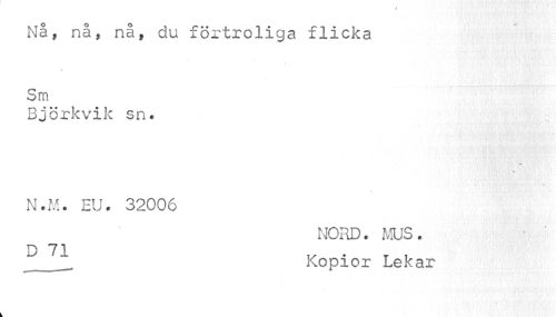 //// Nåf nå, nå, du förtroliga flicka Sm //// Björkvik sn. //// % //// 4 //// N.M. EU. 32006 //// NORD. MUS. Kopior Lekar ////