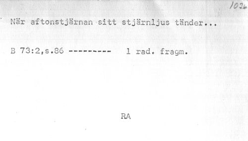 //// r v> //// När aftonstjärnan sitt stjärnljus tänder... //// 3 //// 1Z-.2.S .36------- 1 rad» fragm. //// > //// RA ////