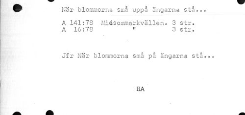 //// fP När blommorna små uppå ängarna stå*.. //// A 141:78 Midsommarkvällen. 3 str. A 16:78 11 3 str. //// Jfr När blommorna små på ängarna stå... //// BA ////