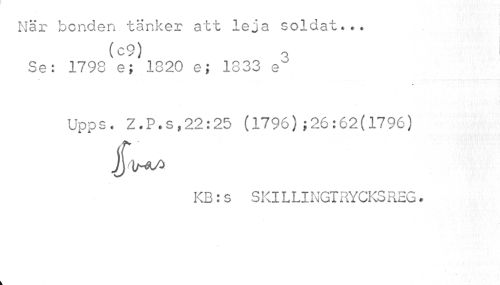 //// Nar bonden tänker att leja soldat..* //// (c9) //// Se: 1793 e; 1820 e; 1833 e3 //// Upps. Z.P.s,22:25 (1796);26:62(1796) //// KB: s S Kl L LI NGT RYCKS REG? ////