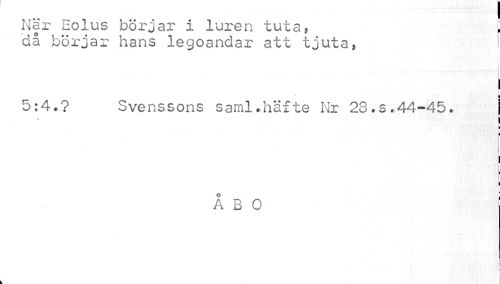 //// När Eoius börjar i luren tuta, . //// då börjar hans legoandar att tjuta, i //// i ¦ //// 5:4.? Svenssons saml.häfte Nr 28.s.44-45. | //// * //// i //// i //// i //// > //// ¦ //// ÅBO //// t //// i //// f ////