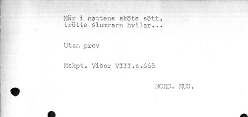 //// När i nattens sköte sött, trötte slumrarn hvilar... //// m //// ¦ //// P?\ • Y; //// Utan prov //// Mskpt. Visor VIII.s.665 //// • nord. mus. //// t ////