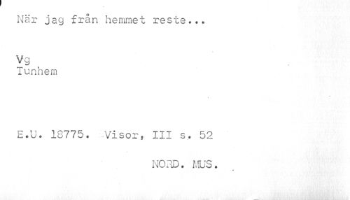 //// När jag från hemmet reste... Tunhem //// E.U. 18775. Visor, III s. 52 //// NORD. MUS. ////