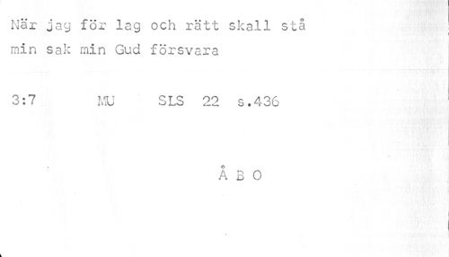 //// När jag för lag och rätt skall stå ; //// min sak min Gud försvara //// 3:7 MU SLS 22 s.436 1 //// i //// ÅBO //// I ////