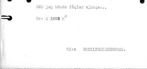 //// När jag hörde fåglar sjunga... Se: E 1883 h4 //// KB:s SKILLINGTRYCKSREG. //// 'r } k ' ////