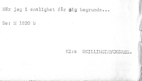 //// När jag i enslighet får ©ig begrunda... Se: N 1820 b //// 1 //// 1 //// ffl //// i //// f //// I //// KB:s SKILLINGTRYCKSREG. i //// 11 //// m //// å y ////