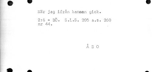 //// När jag ifrån hamaen gick. //// 2:6 - BÖ. S.L.S. 205 a.s. 260 nr 44. //// Å B O ////