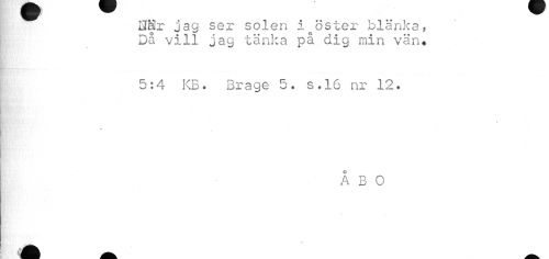 //// ml ~ ^^^ //// UHr jag ser solen ioöster blänka, Då vill jag tänka på.dig min vän» //// 5:4 KB. Brage 5. s.16 nr 12. //// åbo //// iM Wk ////