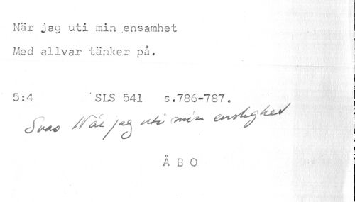 //// När jag uti min ensamhet //// i //// i //// Med allvar tänker på. ! //// i //// 5:4 SLS 541 s.786-787. //// ^ //ay^ ^ ~ - I //// I //// I //// ÅBO ////