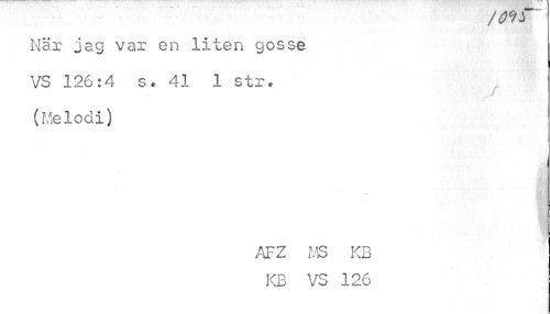 //// - - - /Q 7J //// När jag var en liten gosse VS 126:4 s* 41 1 str. (Melodi) //// AFZ MS KB KB VS 126 //// >¦ ] ////