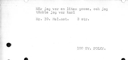 //// v.....• //// r //// Nar jag var en liten gosse, och jag //// tänkte jag var karl //// •J';, • ¦ ' ' > • * i //// RVs f. ,'.-. //// Nr. 10. Mel.not. 3 str. //// ¦ //// » //// 100 SV. FOLKV. ////
