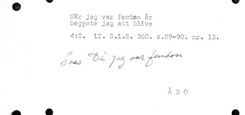 //// När jag var femton år begynte jag att bliva //// 4:8. LT. S.L.S. 360. s.89-90. nr. 13. //// Ju» ^/J //// ÅBO //// % ////
