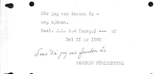 //// När jag var femton år -ung sjöman. //// Maal. J.Ht 6.4 (oreg.) --- m? //// Del II nr 1108 //// * //// RANCKEN FÖRTECKNING //// __- ////