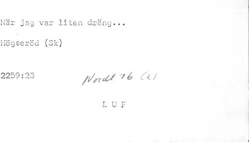 //// \Tär jag var liten dräng... iögseröd (Sk) //// 2259:23 ///^ ^ ^ //// L U F //// Å ////