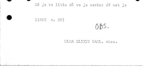 //// Nä ja va litin da va ja vacker dä vet ja 11482 g. 801 //// Ö&s, //// U LMA BLIXTS SAML. obs c. ////